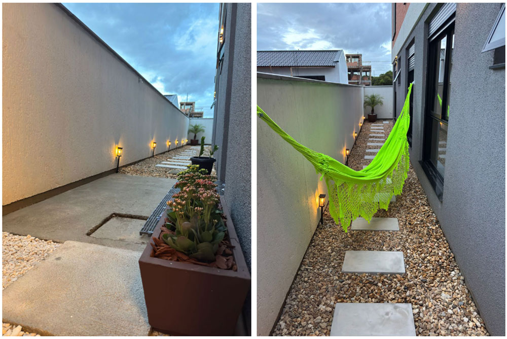 O apartamento possui um *garden com área externa* ideal para relaxar e uma *sacada com churrasqueira* perfeita para reunir amigos e familiares. Situado na Praia do Sonho, em Santa Catarina, este é o destino ideal para quem busca estar próximo ao mar, com toda a comodidade de uma casa bem equipada.