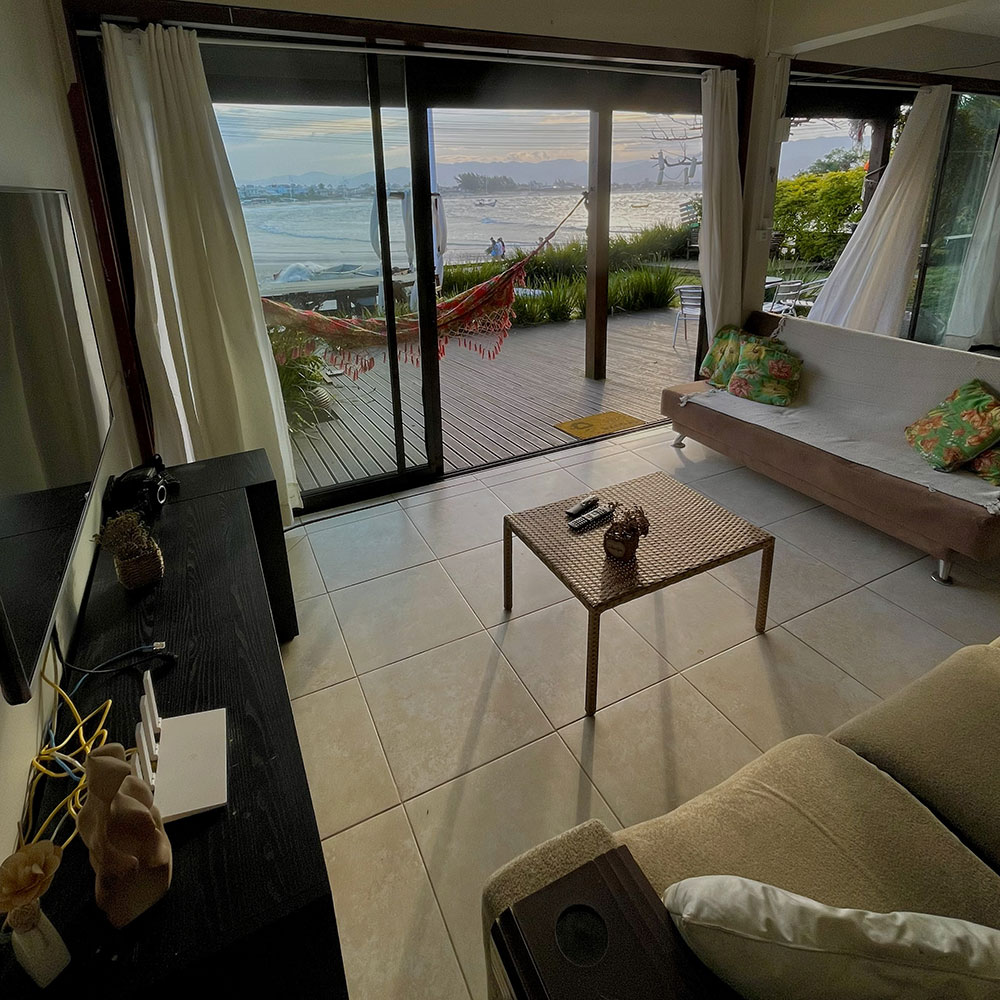 - Sala ampla envidraçada com vista para o mar e sofá-cama