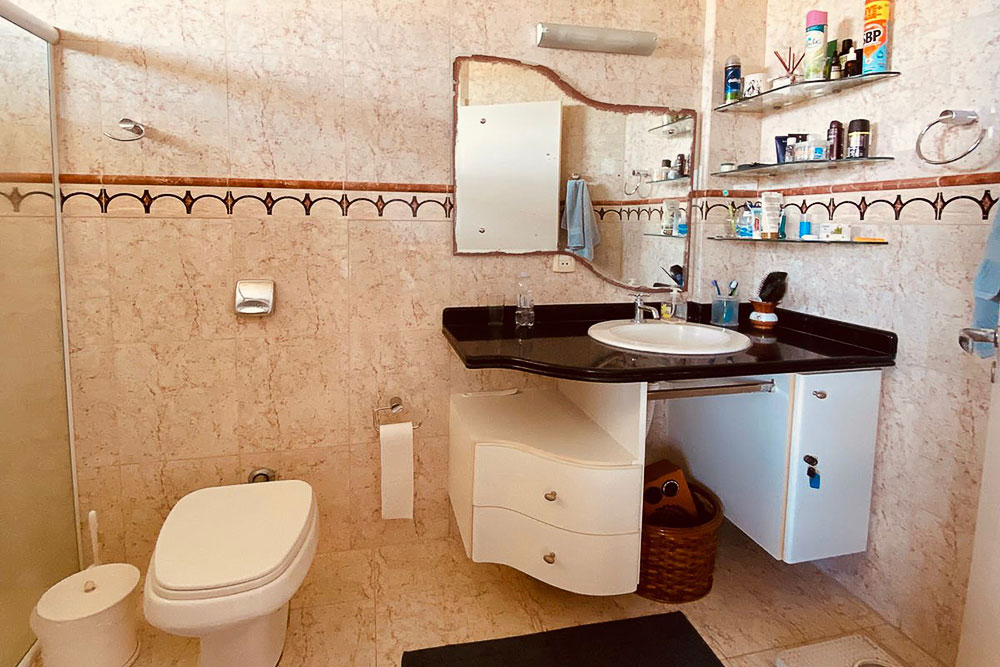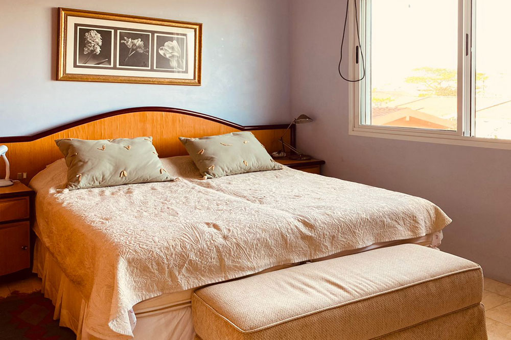 Acomoda até 7 pessoas, com 3 quartos (uma suíte), banheiro social e lavabo. Todos os quartos possuem ar-condicionado.