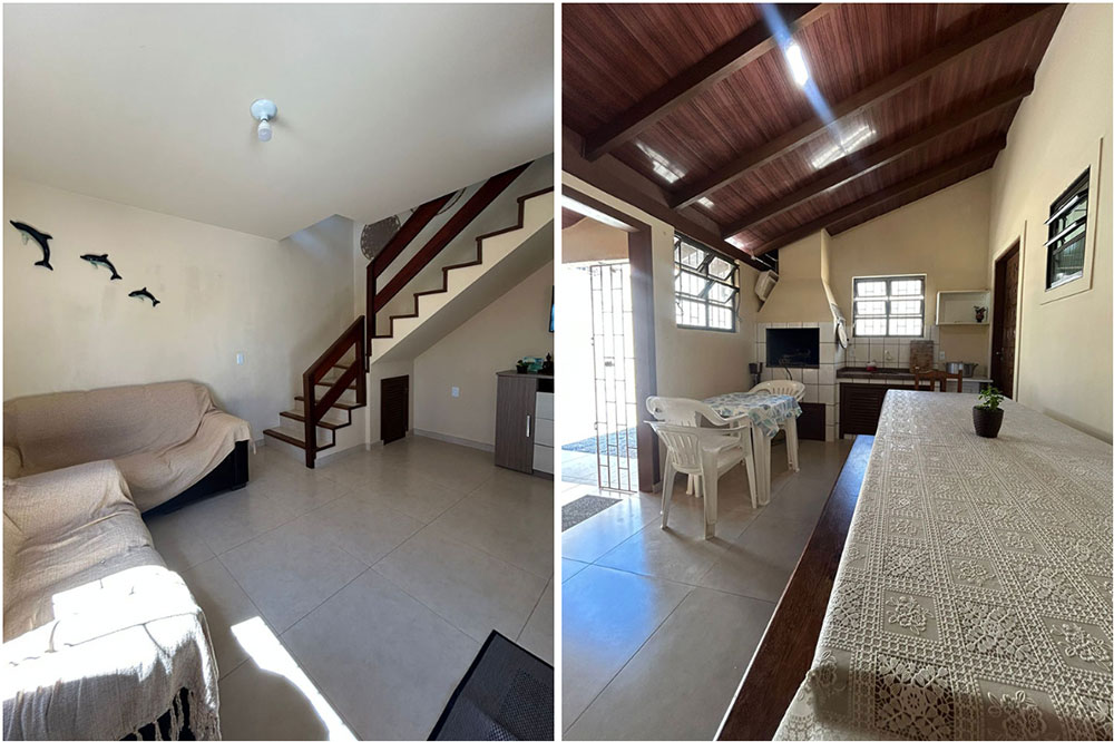 Aluga-se casa situada na Praia de Baixo da Pinheira, aproximadamente 500 metros do mar, equipada com: