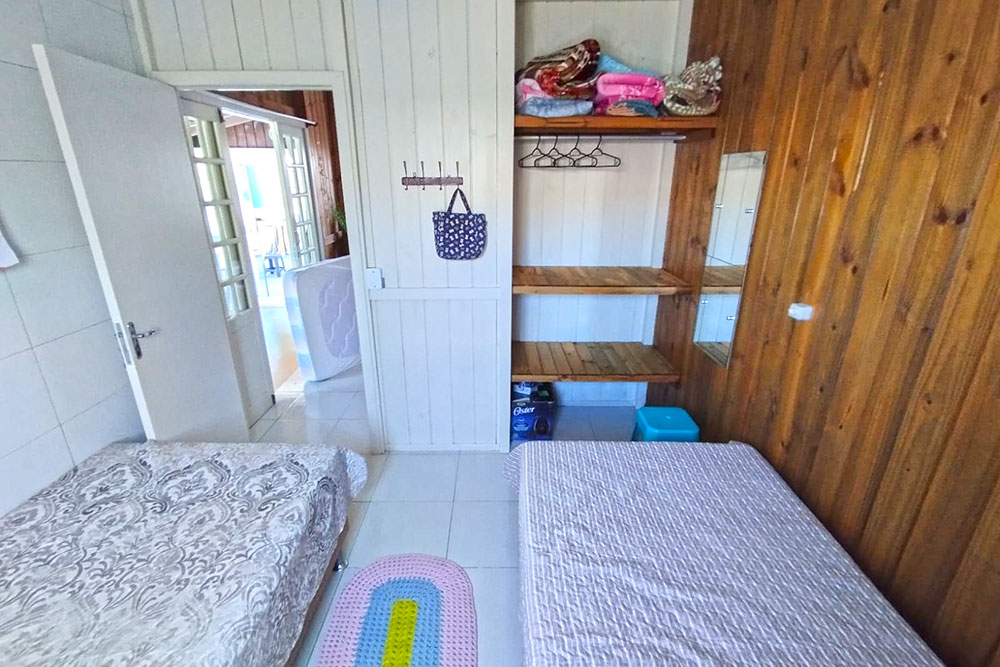 - Dormitório 1: 2 camas box solteirão (1m x 2m)