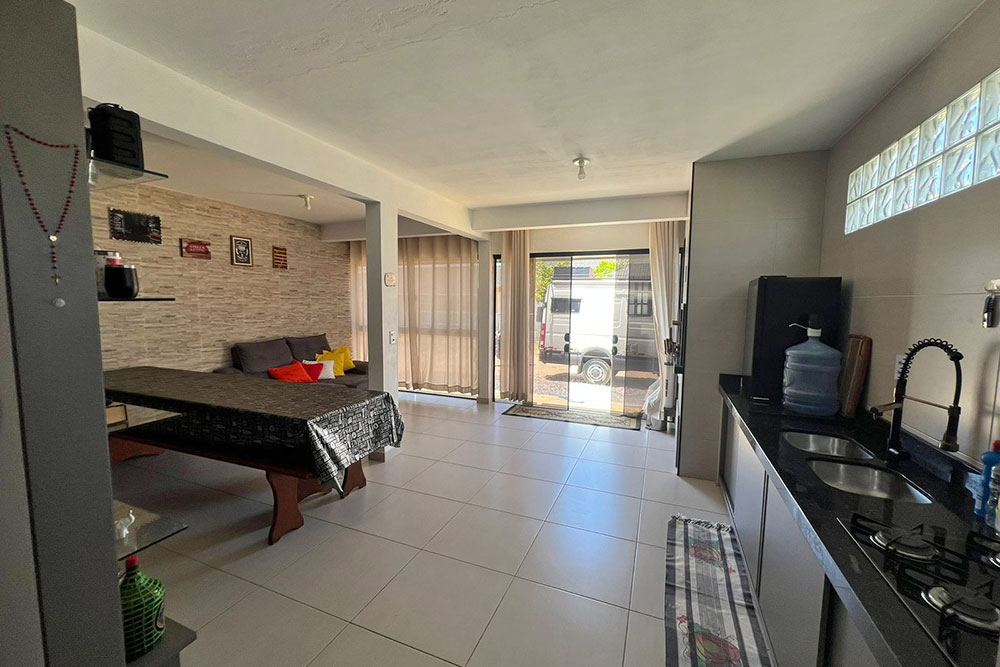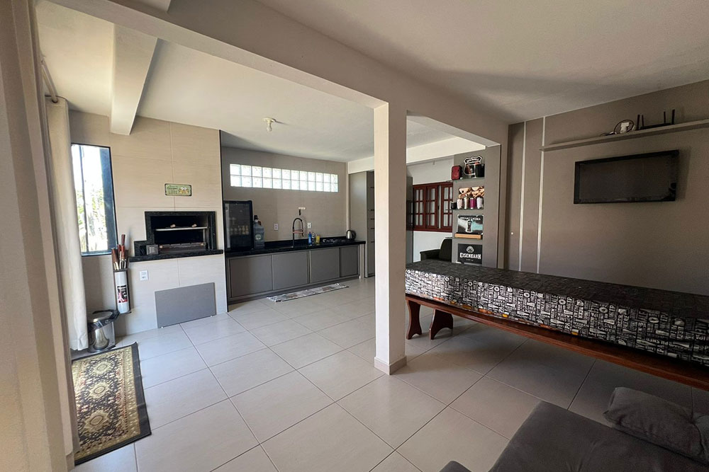 - Cozinha completa (c/ geladeira, freezer, cervejeira, microondas, churrasqueira giratória, espetos, mesa grande e demais eletrodomésticos)