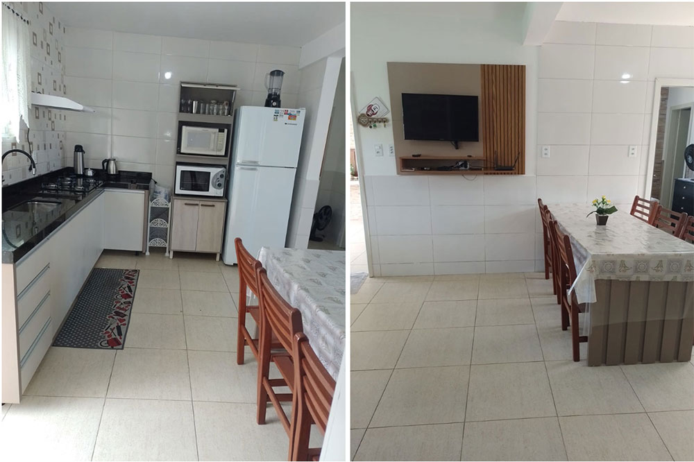 - Cozinha completa (com todos utensílios domésticos, microondas, 02 geladeiras duplex, batedeira, cafeteira, liquidificador e sanduicheira)