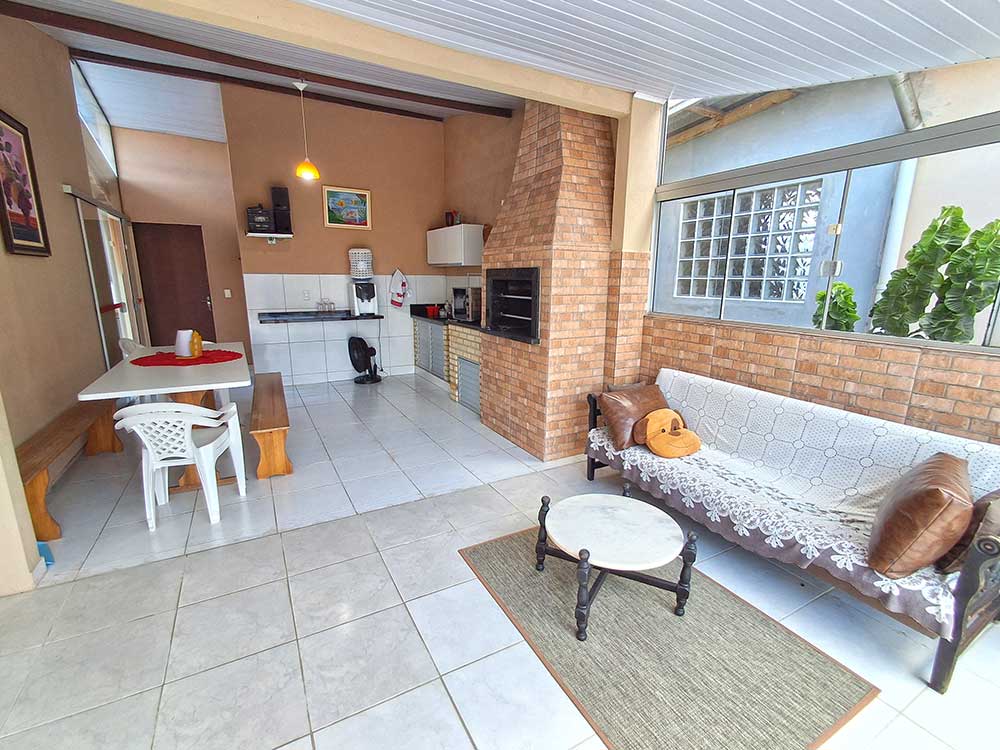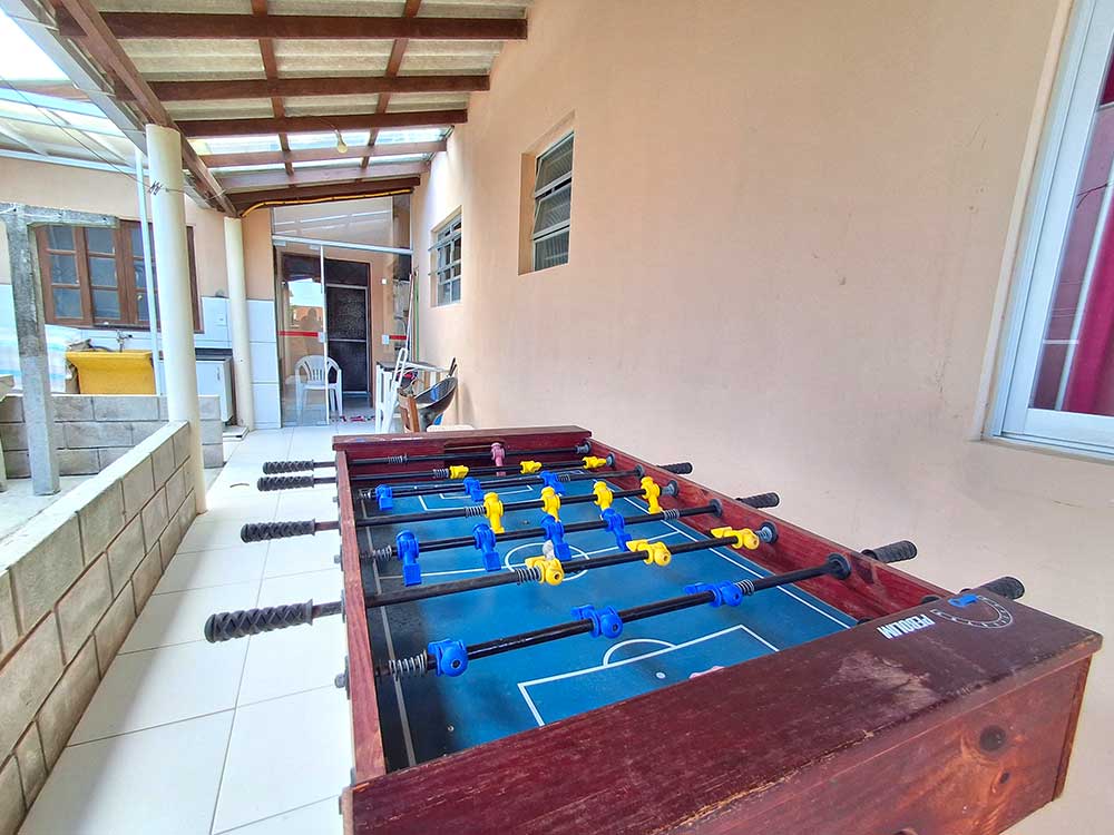- Área de lazer (c/ churrasqueira, fogão a lenha, pia, espetos, grelha e mesa de pebolim)