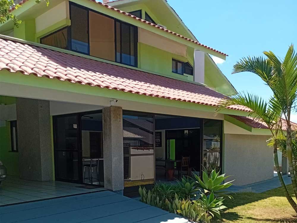 • Sobrado na Praia de Cima, com piscina, aproximadamente 300 metros da praia, com duas sacadas com uma vista inesquecível para as praias de Cima, de Baixo, do Sonho, Ilha dos Náufragos, Ponta do Papagaio e Morro da Pinheira.