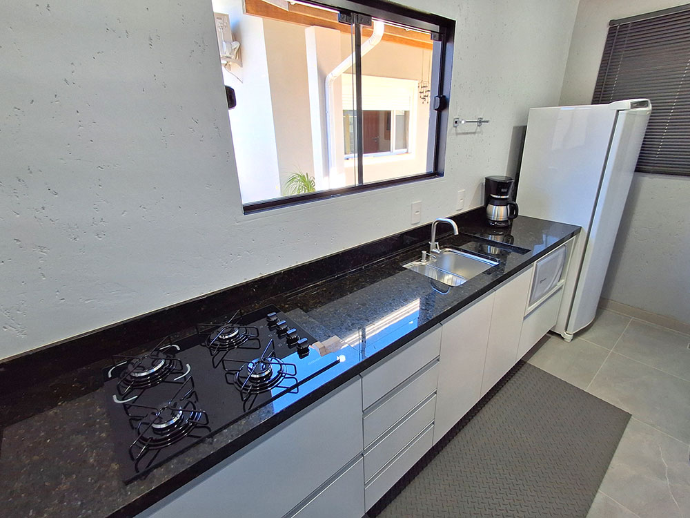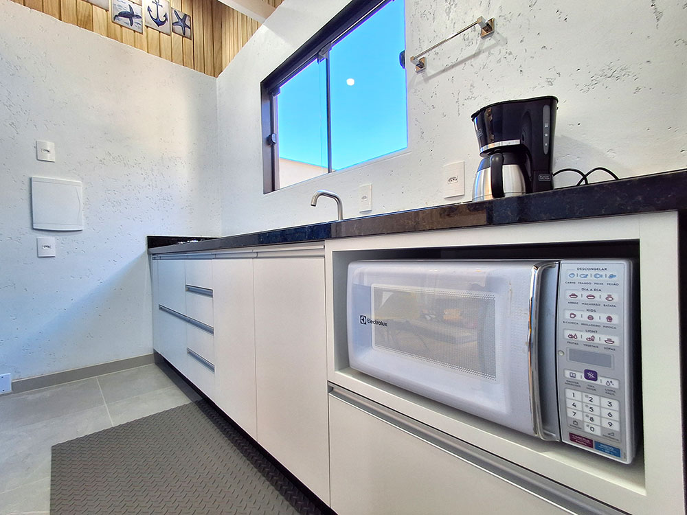 • Cozinha completa (com microondas, liquidificador, air fryer, sanduicheira e cafeteira)