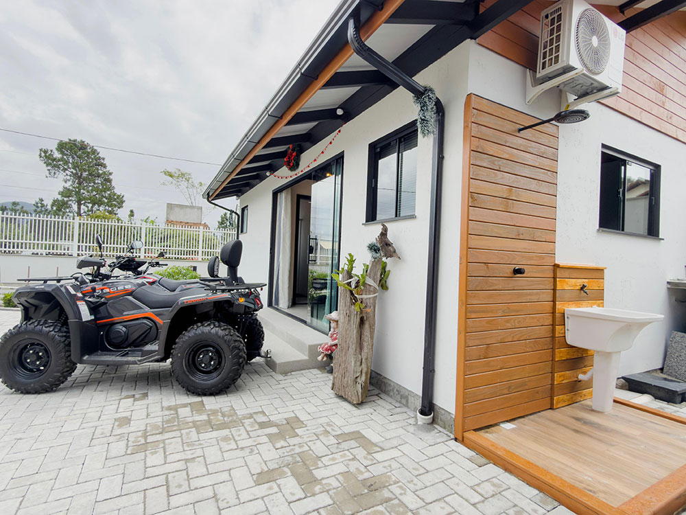 • Área de serviço (com ducha externa, churrasqueira, espetos, grelha e tanque)