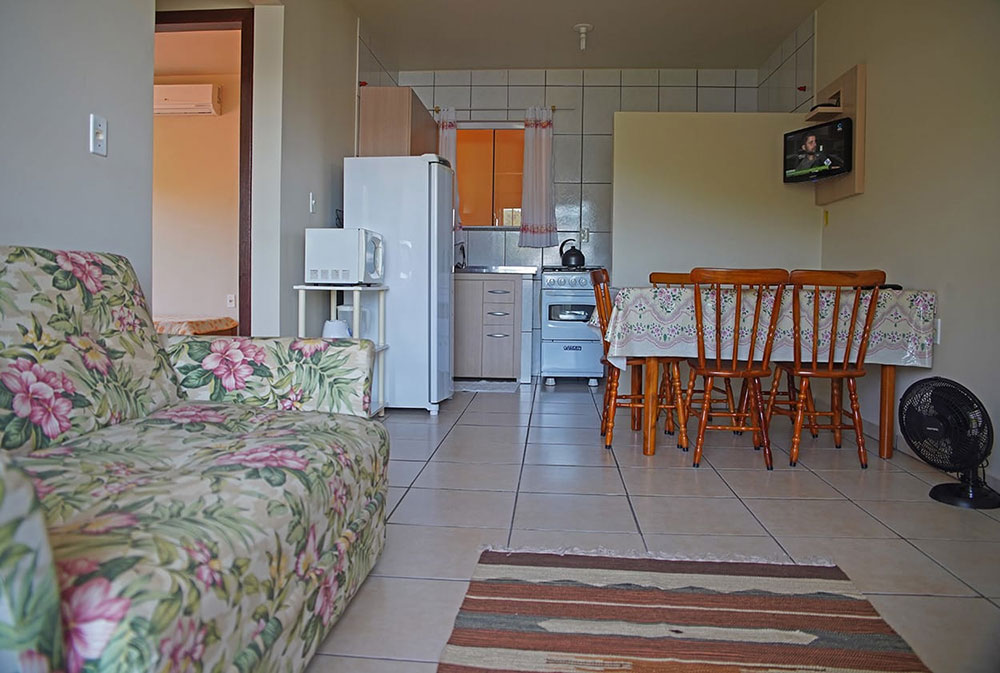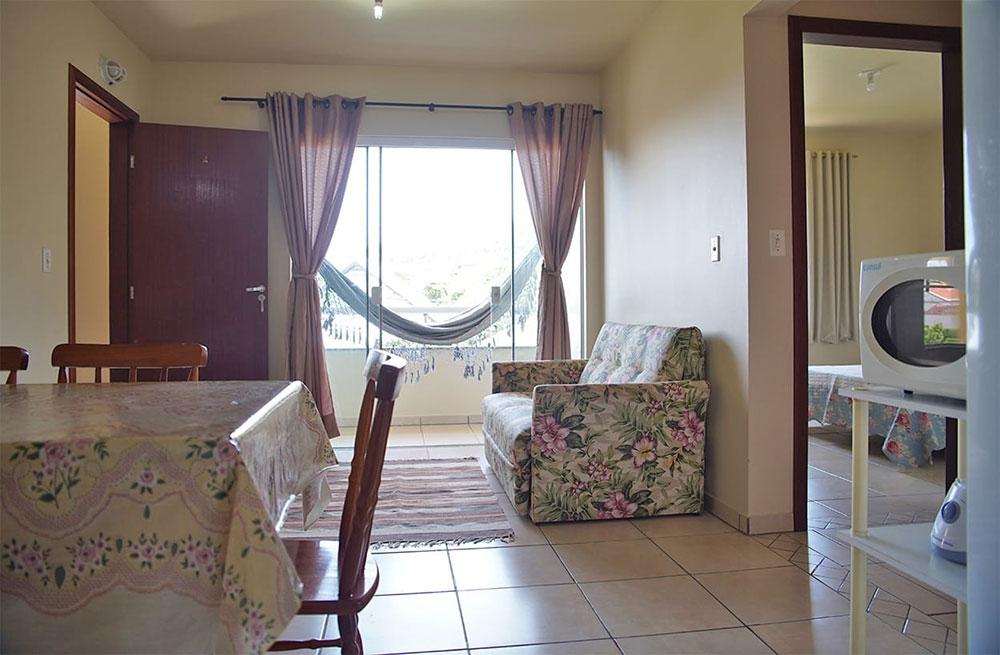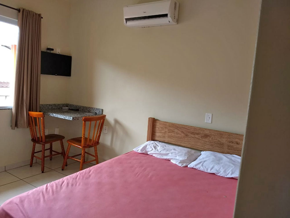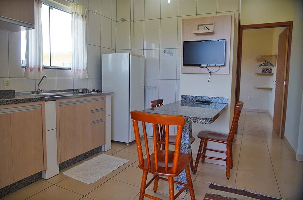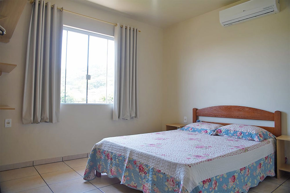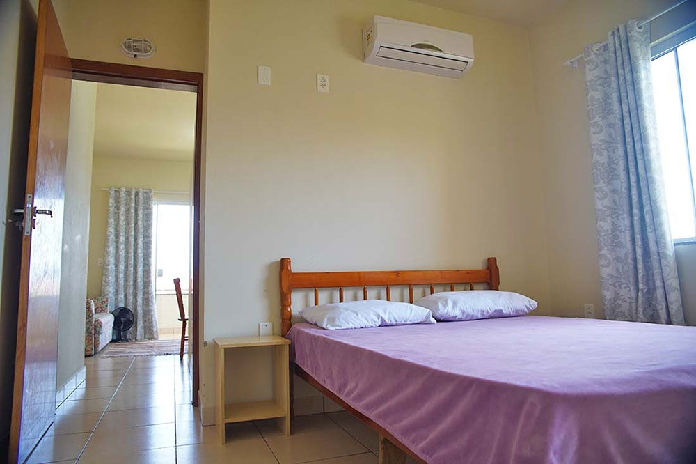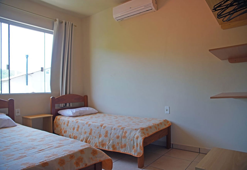 - 01 e 02 dormitórios (um quarto com cama de casal e outro com duas camas de solteiro)