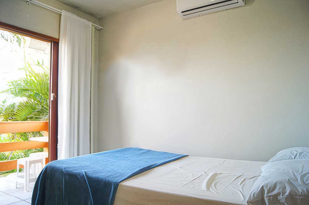 - Apartamentos com sacada/varanda privativa, com rede ou cadeirinha para descanso