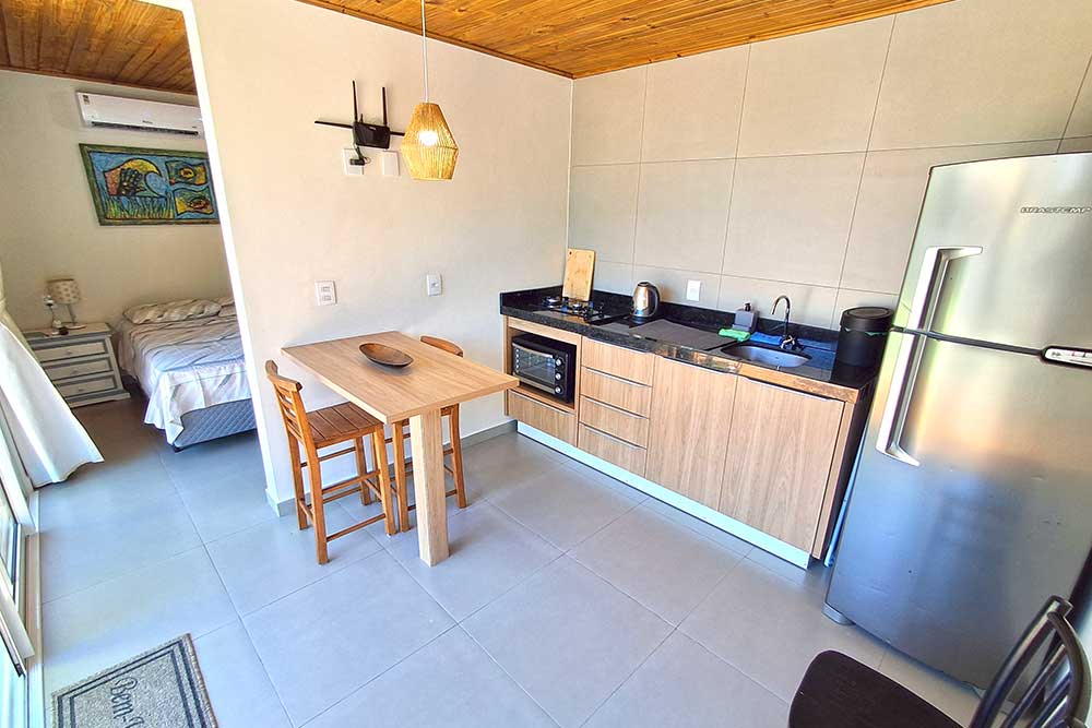 • Cozinha completa (c/ forno elétrico, sanduicheira e chaleira elétrica)