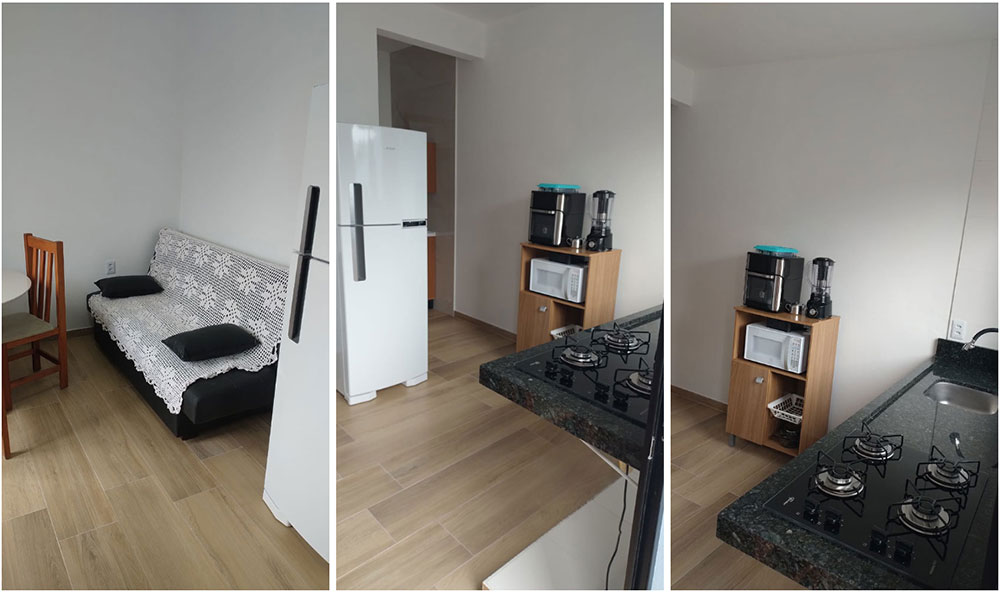 O Residencial Ida oferece um sobrado e kitinetes para aluguel, localizados na Praia de Baixo da Pinheira, aproximadamente 50 metros da praia.