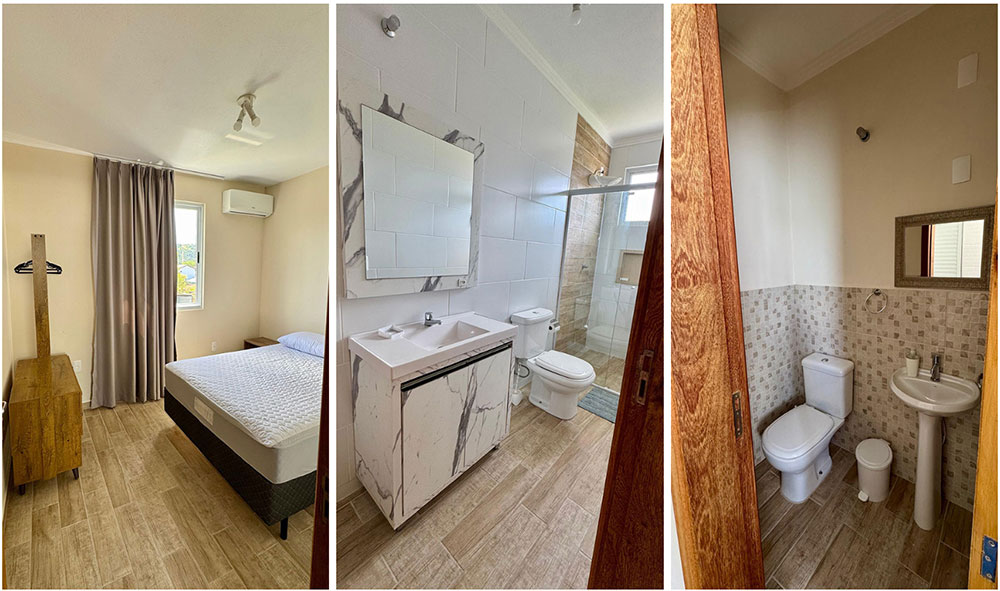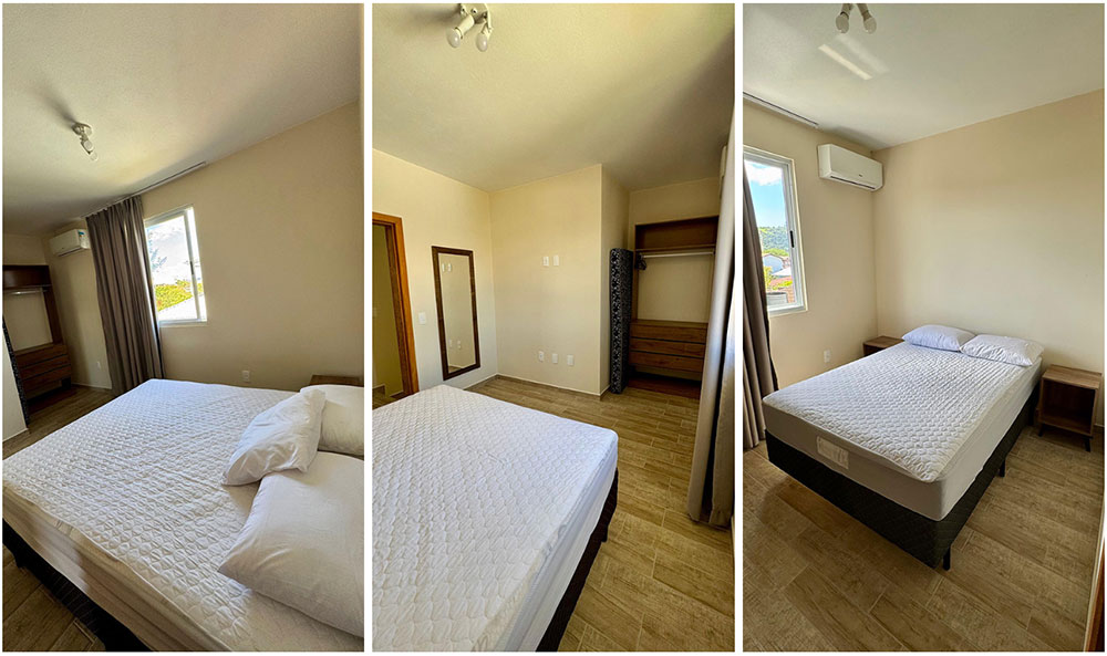 Todos eles são equipados com utensílios básicos de cozinha, geladeira, fogão, microondas, liquidificador, tv na sala, Wi-Fi, ar condicionado nos quartos, e com todos os móveis novos pensados para o seu conforto!