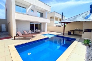 Aluga-se casa de alto padrão, localizada em condomínio fechado no Balneário Ponta do Papagaio à 150 metros da praia , equipada com: Piso superior: 03 suítes (suíte principal com cama box de casal, 2ª suíte com cama de casal e 3ª suíte com 02... Continue lendo