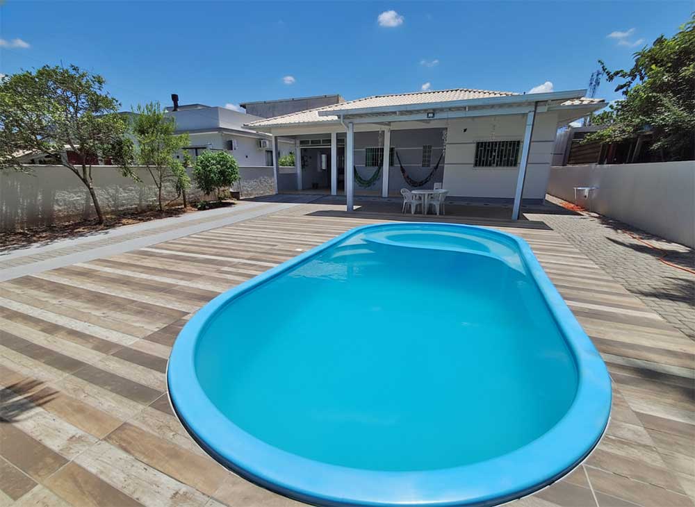 • Aluga-se casa situada na Enseada da Pinheira (Mar Aberto), aproximadamente 200 metros da praia, equipada com: