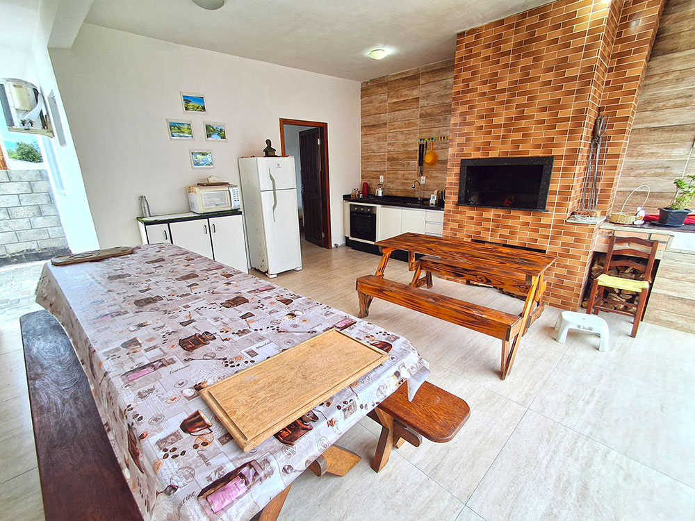 - Área gourmet (c/ cozinha completa, churrasqueira, microondas, geladeira duplex, espetos, grelha e rede)