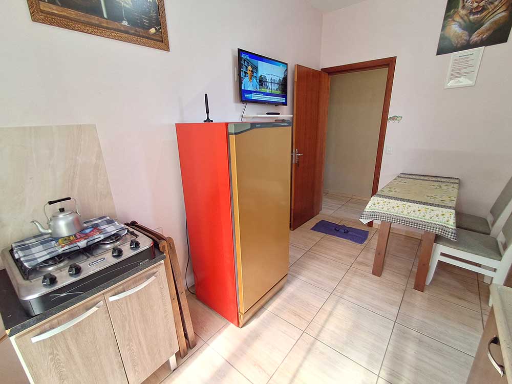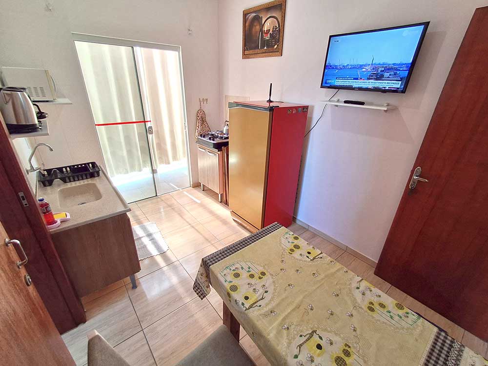 - Cozinha completa (com microondas, cafeteira, liquidificador, sanduicheira e TV LED)