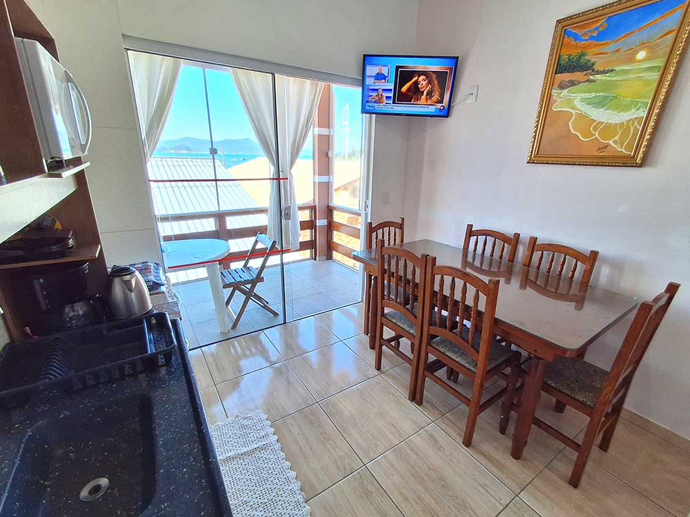 - Cozinha completa (com microondas, cafeteira, liquidificador, sanduicheira e Smart TV)