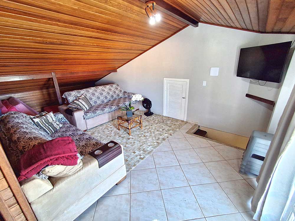A casa ainda oferece uma área com churrasqueira externa que é de uso comum, dependendo de agendamento prévio com os proprietários e roupa de cama.